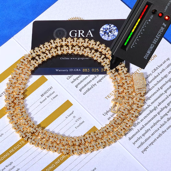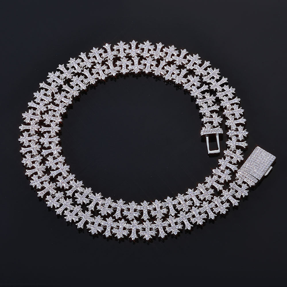 Featuring our Moissanite Cross Link Chain, Custom-designed and Hand-set with VVS Moissanite Stones to stand out from the crowd. This unique piece is sure to impress.
