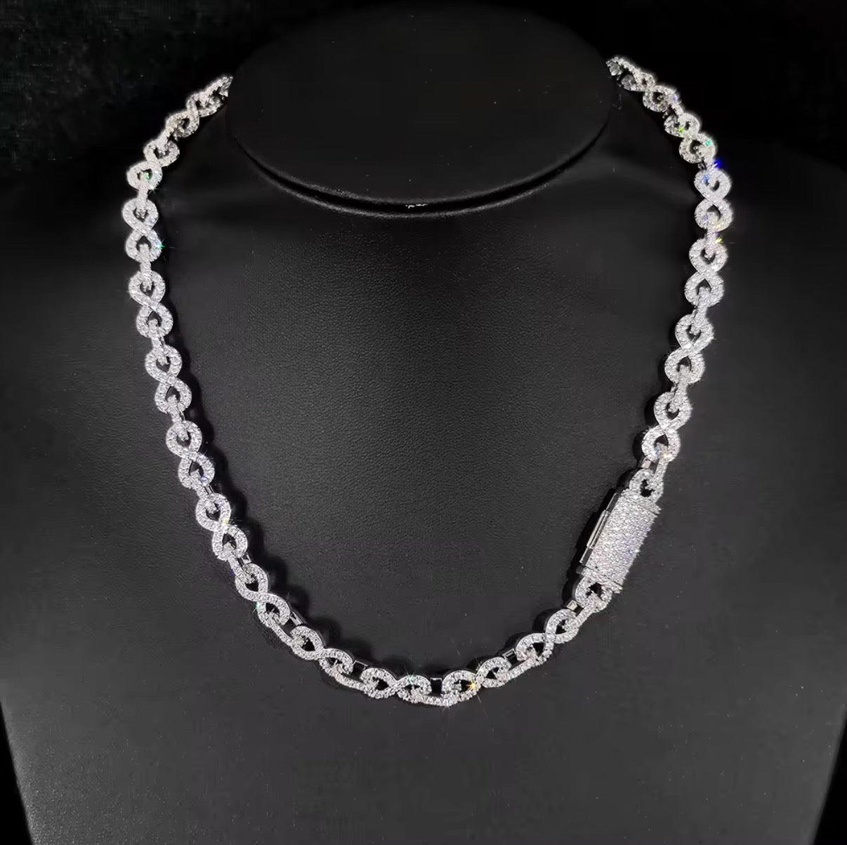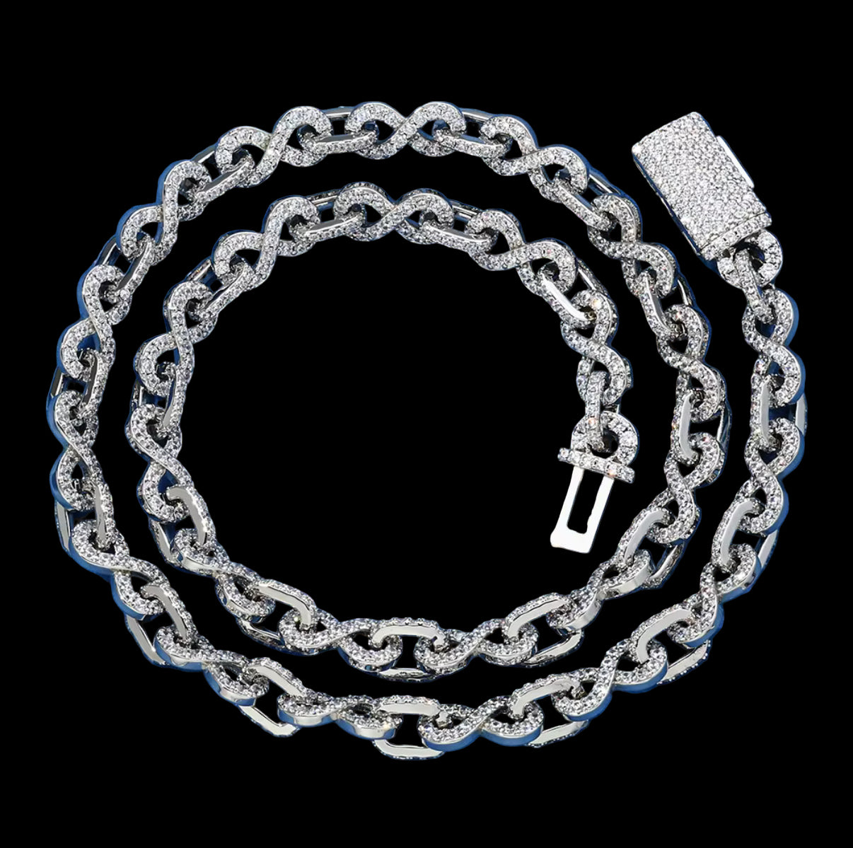Icetray Exclusive! This chain is custom designed to stand out from the crowd. Enjoy our flashy Infinity Link chain with hand-set stones.