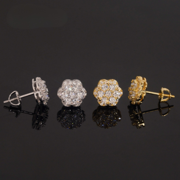 Featured is our Moissanite Flower Cluster Earrings, complimented by stunning brilliant cut Moissanite Stone, the unique flower design will turn heads and stand out from the crowd. Guaranteed to light up every room you walk in!