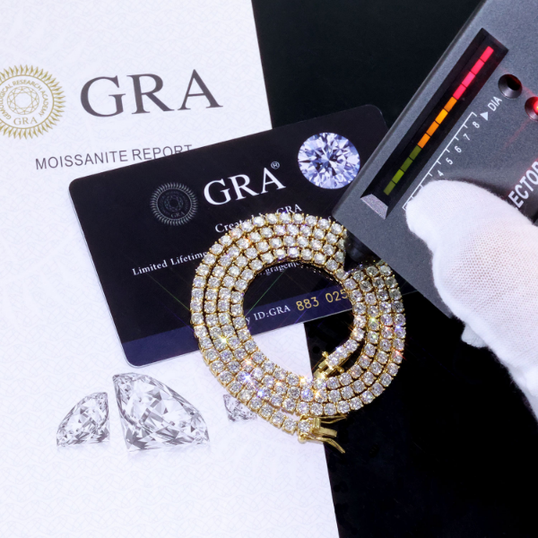 Enjoy our Moissanite Tennis Chain, featuring the classic Tennis design that will shine with every movement. Pair with one of our Moissanite Tennis Bracelets for the complete set!